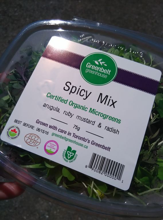 園主拿了好幾盒不同的菜苗成品出來分發給我們。我拿了這個 spicy mix。。。我就是不信這些菜苗一吃進口就有辣的感覺!